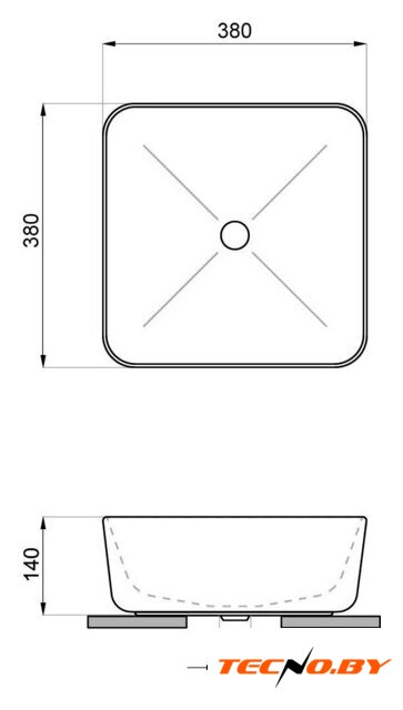 40x40 см, с одной чашей, накладной, фарфор, крепление на столешницу