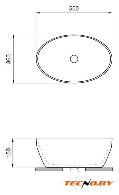 60x34 см, с одной чашей, накладной, фарфор, крепление на столешницу