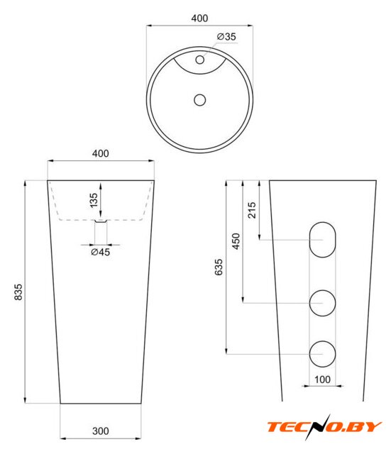 40x40 см, с одной чашей, накладной, фарфор, крепление на столешницу