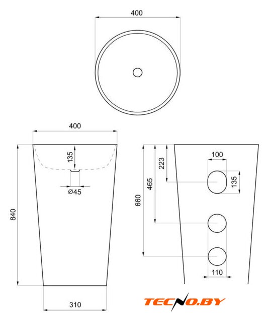 45x45 см, с одной чашей, настенный, фарфор, крепление на стену