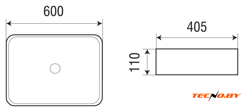 80x40 см, с одной чашей, накладной, фарфор, крепление на столешницу