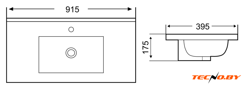 55x45 см, с одной чашей, накладной, фарфор, крепление на столешницу