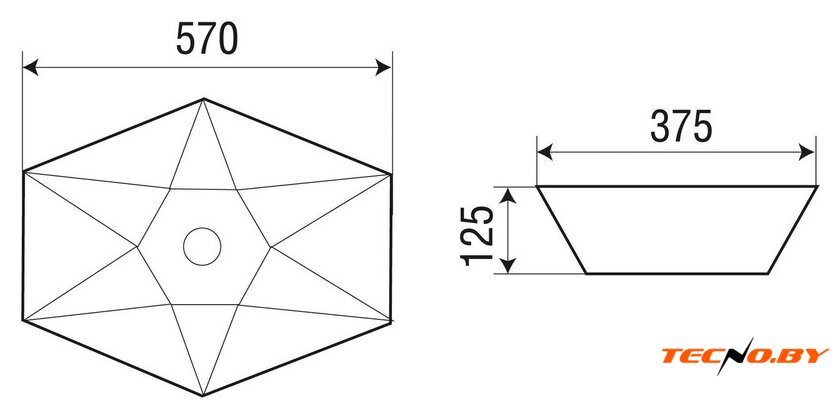 65x46 см, с одной чашей, накладной/настенный, фарфор, крепление на столешницу/на стену