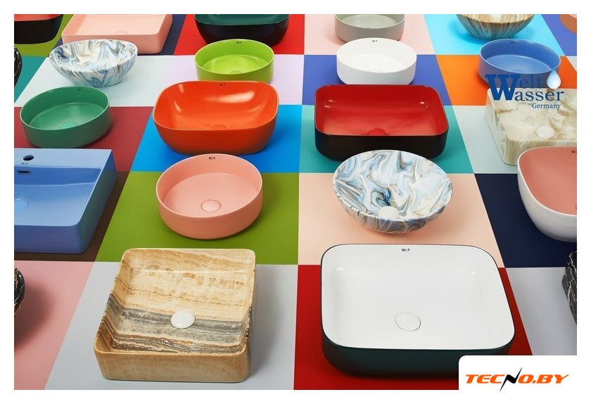 35.5x35.5 см, с одной чашей, накладной, фарфор, крепление на мебельный шкаф/на столешницу