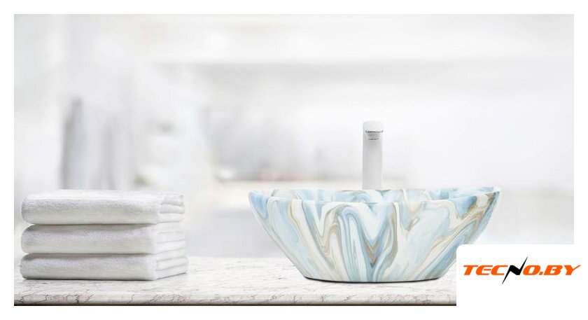 40x40 см, с одной чашей, накладной, фарфор, крепление на столешницу