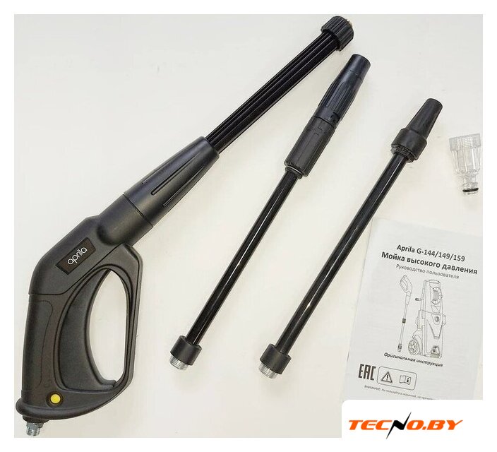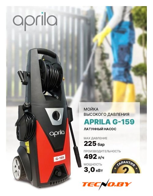 | Комплектация | - Минимойка высокого давления Aprila G-159- Моечный пистолет с резьбовым соединением аксессуаров- Струйное копье с регулятором струи - Грязевая фреза- Комплект для чистки сопел струйной трубке- Фильтр тонкой очистки- Барабан для намотки шланга- Держатель для электрокабеля- Встроенный держатель/ пенал для аксессуаров- Инструкция на русском языке |