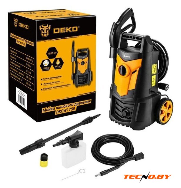 1650 Вт, 360 л/ч, максимальное рабочее давление: 90 Бар, максимальная температура на входе: 50 °C, длина шланга: 5 м
