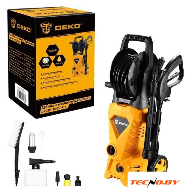2000 Вт, 450 л/ч, максимальное допустимое давление: 150 Бар, длина шланга: 8 м