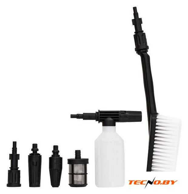 | Комплектация | • мойка• пистолет• удлинительная трубка• веерная насадка• грязевая фреза• пенная насадка• моющая щетка• быстросъемное соединение с фильтром тонкой очистки• фильтр для работы в режиме всасывания• стержень для очистки• руководство по эксплуатации• гарантийный талон |
