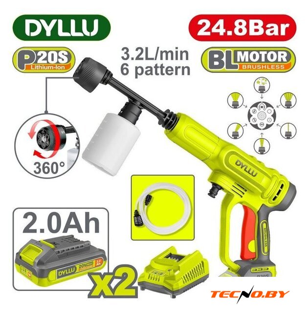 | Комплектация | - Мойка высокого давления - 1 шт.- Аккумулятор DTLBP520 2.0 А·ч - 2 шт.- Зарядное устройство DTFCP518 - 1 шт.- 6-и режимный распылитель - 1 шт.- Шланг для подачи воды 3 м - 1 шт.- Пеногенератор 300 мл - 1 шт.- Коробка |