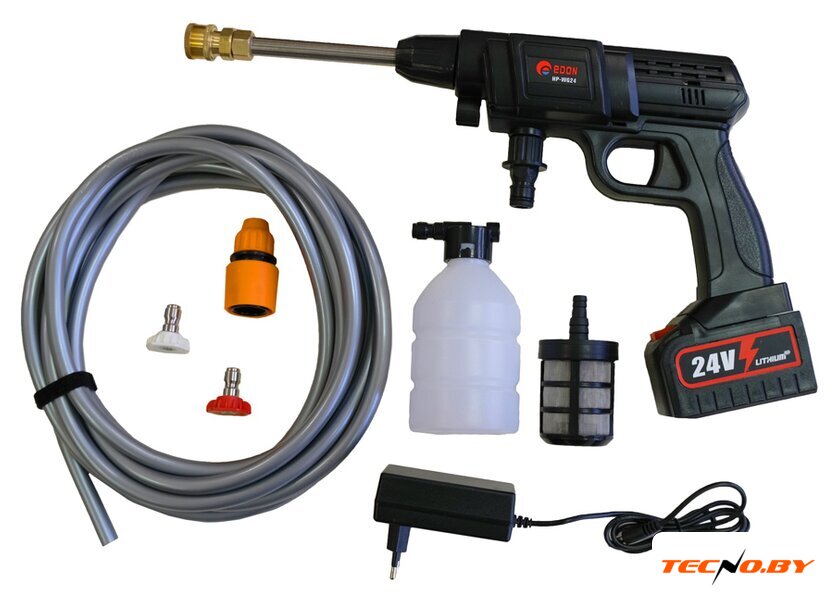 Модель Edon HP-WG24 – это не только мощное, но и экологически чистое решение, благодаря своему аккумуляторному источнику питания. Эффективное использование воды и возможность самостоятельно выбирать моющие средства делают эту мойку безопасной как для вас, так и для окружающей среды.