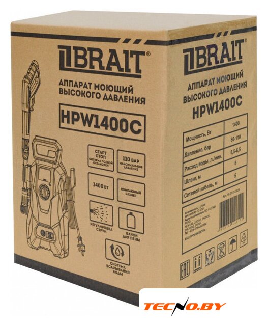 1400 Вт, 6.5 л/ч, максимальное рабочее давление: 80 Бар, максимальная температура на входе: 50 °C, длина шланга: 5 м