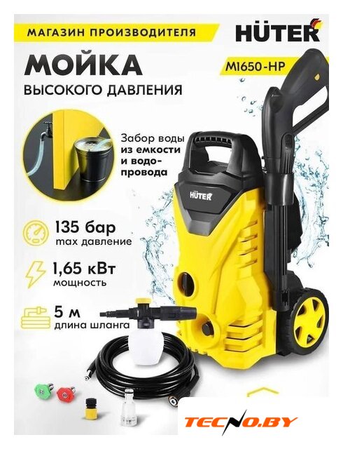 1800 Вт, 360 л/ч, максимальное рабочее давление: 100 Бар, максимальная температура на входе: 50 °C, длина шланга: 5 м