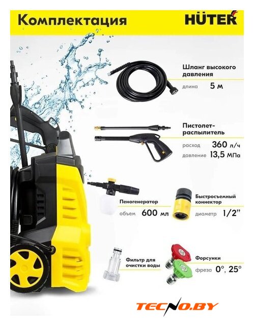 | Комплектация | - Мойка высокого давления- Пистолет-распылитель разборный- Шланг высокого давления- Пеногенератор- Игла для очистки сопла- Сменные форсунки - Фильтр- Быстросъёмный коннектор для шланга подачи воды |