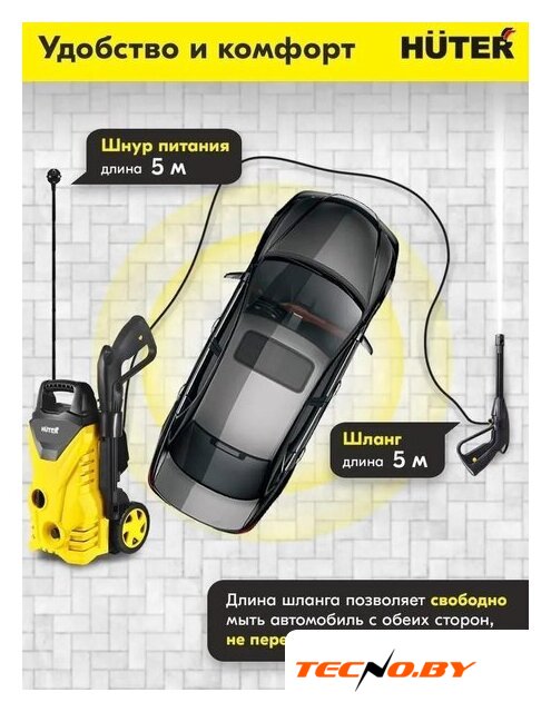 1500 Вт, 370 л/ч, максимальное рабочее давление: 115 Бар, максимальная температура на входе: 50 °C, длина шланга: 5 м