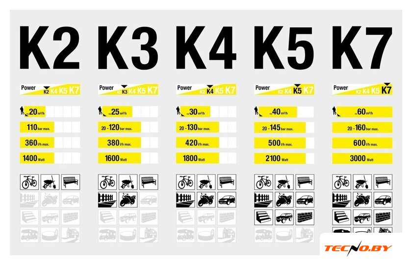 2500 Вт, 500 л/ч, максимальное рабочее давление: 150 Бар, максимальная температура на входе: 50 °C, длина шланга: 8 м