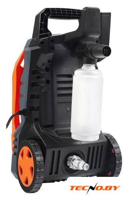 Мойка работает от стандартной однофазной сети электропитания, обеспечивая удобство подключения в любых условиях. Максимальная температура воды на входе допускается до 40 °C, что гарантирует эффективную очистку без перегрева. Независимо от температуры и времени работы, прибор сохраняет надежную производительность, правда, функции подогрева воды или подачи пара в данной модели отсутствуют. Комплектация включает грязевую фрезу и пенокомплект, позволяя более эффективно удалять трудновыводимые пятна с поверхностей.
