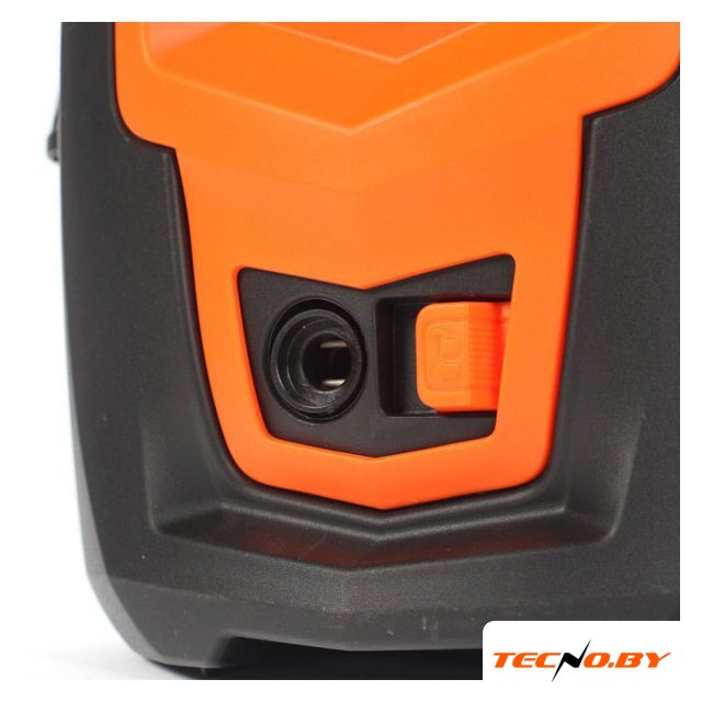 Сочетание яркого оранжевого и стильного черного цвета придает мойке современный и привлекательный внешний вид. Она компактна и легка, весит всего 6,2 кг, поэтому легко транспортируется и хранится. Длина шланга в 3 метра позволяет легко добираться до нужных участков, а длина кабеля в 2 метра делает подключение к электропитанию простым и быстрым. Кроме того, наличествует удобный держатель для хранения шланга и отсек для принадлежностей, что позволяет поддерживать порядок.