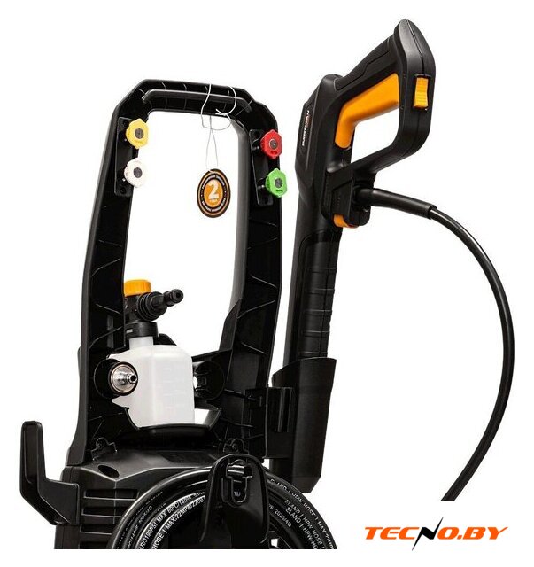 | Комплектация | • мойка высокого давления, • ручка, • пистолет−распылитель, • трубка струйная, • пенообразователь, • шланг высокого давления, • набор насадок (4 форсунки, грязевая фреза), • набор аксессуаров для комфортного использования (держатель пистолета, держатель шнура питания, держатель форсунок, фильтр подачи воды, игла для очистки форсунки, винты), • руководство по эксплуатации, • гарантийный талон |