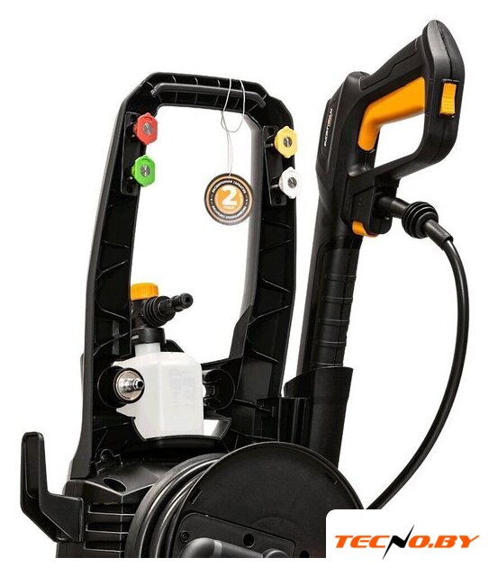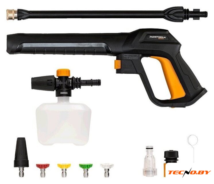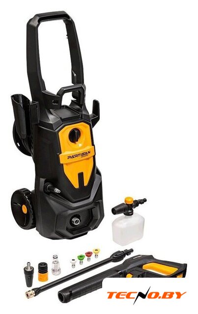| Комплектация | • мойка высокого давления, • ручка, • пистолет−распылитель, • трубка струйная, • пенообразователь, • шланг высокого давления, • набор насадок (4 форсунки, грязевая фреза), • набор аксессуаров для комфортного использования (держатель пистолета, держатель шнура питания, держатель форсунок, фильтр подачи воды, игла для очистки форсунки, винты), • руководство по эксплуатации, • гарантийный талон |
