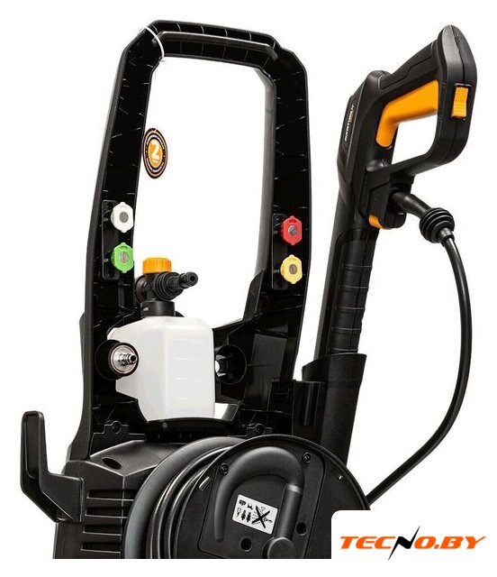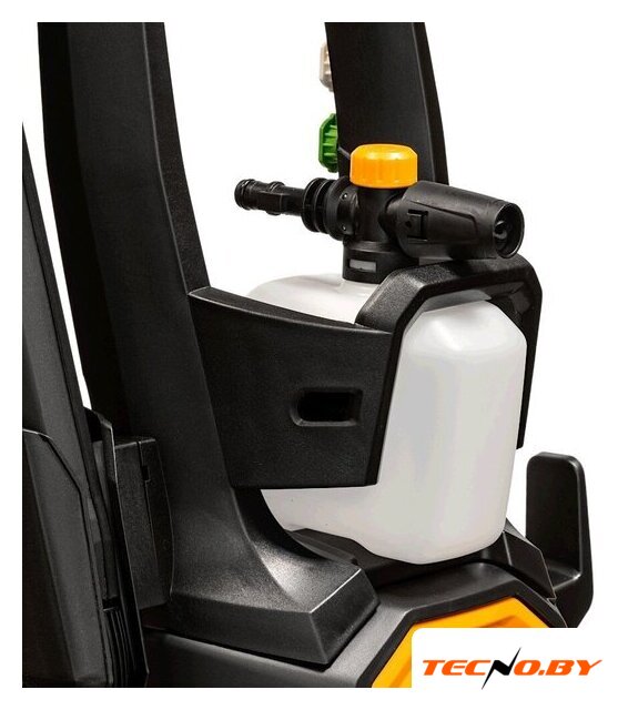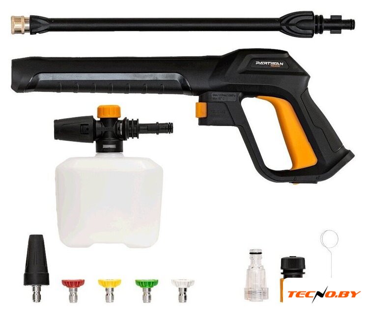 | Комплектация | • мойка высокого давления, • ручка, • пистолет−распылитель, • трубка струйная, • пенообразователь, • шланг высокого давления, • набор насадок (4 форсунки, грязевая фреза), • набор аксессуаров для комфортного использования (держатель пистолета, держатель шнура питания, держатель форсунок, фильтр подачи воды, игла для очистки форсунки, винты), • руководство по эксплуатации, • гарантийный талон |