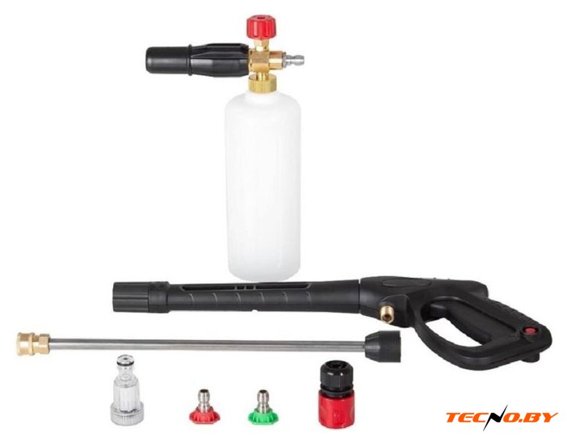 Комплектация | - Мойка высокого давления;- Пистолет-распылитель разборный;- Шланг высокого давления;- Пеногенератор;- Игла для очистки сопла;- Сменные форсунки;- Фильтр;- Быстросъёмный коннектор для шланга подачи воды;- Руководство по эксплуатации;- Упаковка. |