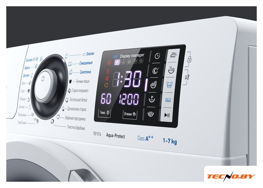 отдельностоящая, автоматическая стиральная машина, загрузка до 7 кг, отжим 1200 об/мин, глубина 48.2 см (с люком 56 см), энергопотребление A+++, 16 программ