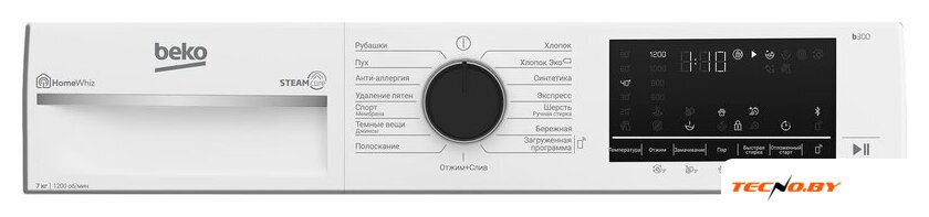 Стиральная машина BEKO B3WFR572WB предлагает широкие возможности программирования. В вашем распоряжении 15 программ, включая Хлопок, Эко, Синтетику, Экспресс и другие. Для тех, кто спешит, предусмотрена самая короткая программа, которая занимает всего 14 минут. Функции обработки паром имитируются от ТЭНа машинки для более эффективного удаления пятен и замачивания.