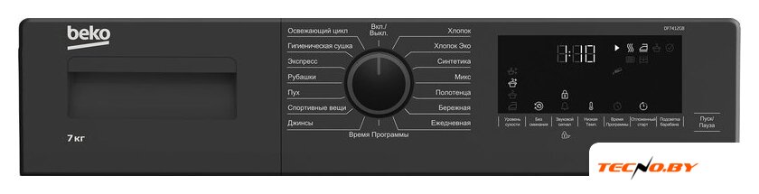 | Все программы | бережная, гигиена, джинсы, ежедневная, микс, освежить, полотенца, пух, рубашки, синтетика, спортивная одежда, сушка по времени, хлопок, хлопок Eco, экспресс |