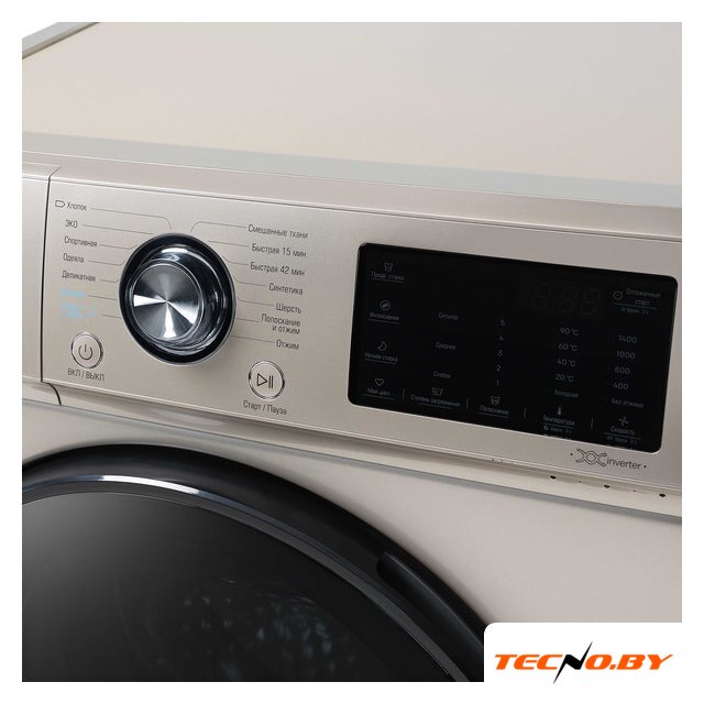 Эстетика модели не оставляет равнодушным — золотистый корпус с черным люком делает ее ярким и выразительным элементом интерьера. В центре внимания находится не только ее внешняя привлекательность, но и функциональность. Несмотря на отсутствие прямого привода, стиральная машина гарантирует эффективное и тихое выполнение своих задач.