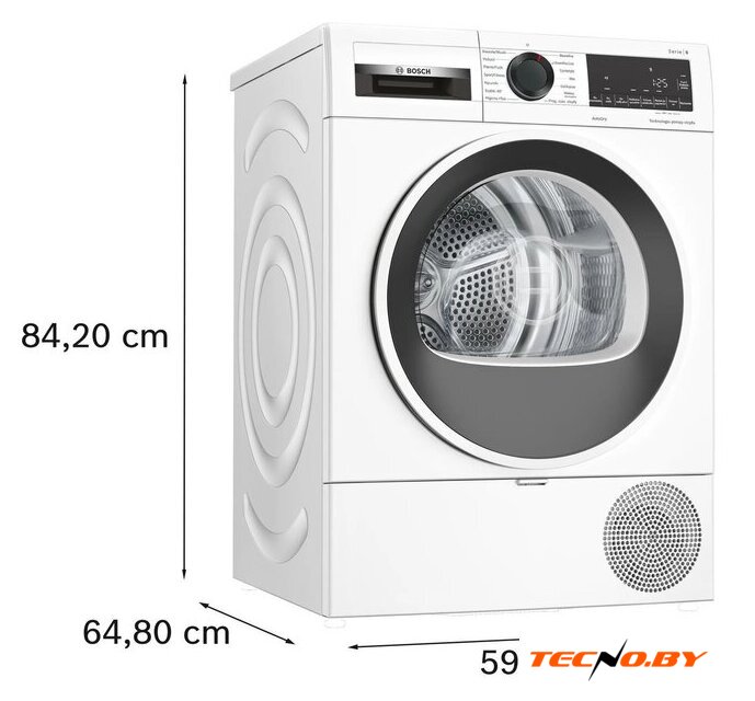 отдельностоящая, сушильная машина, сушка: конденсация с тепловым насосом, загрузка до 8 кг, глубина 63.8 см (с люком 66.3 см), энергопотребление A++, 12 программ