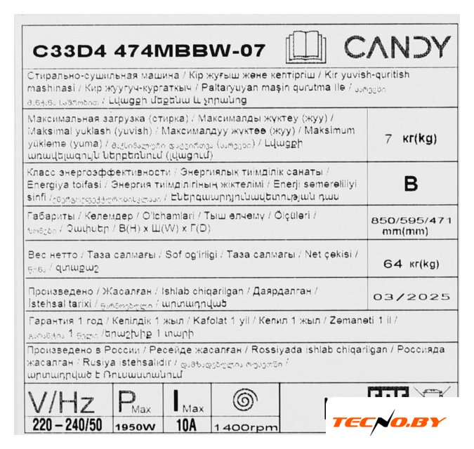 | Расход электроэнергии (стирка+сушка) | 5.6 кВт·ч |