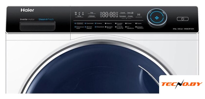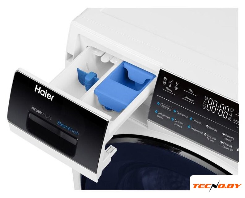 Благодаря своему белому цвету с изящными серебристыми и синими элементами, стирально-сушильная машина Haier станет стильным акцентом в вашем интерьере.