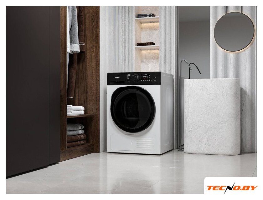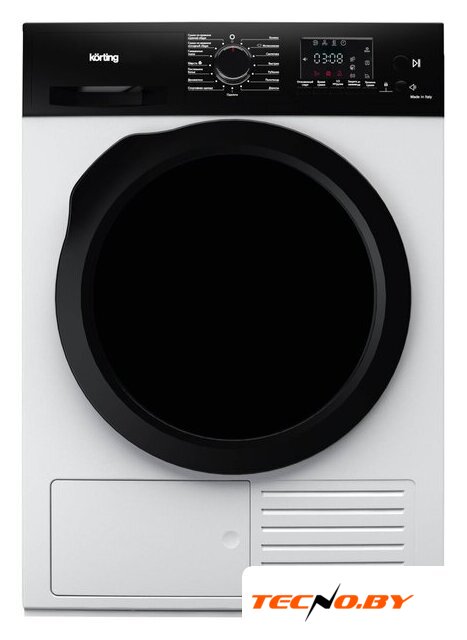 Сушильная машина Korting KD 69 IHP представлена в стильном белом цвете с контрастным черным люком. Этот современный и элегантный дизайн позволяет устройству вписаться в любой интерьер. Вместительный барабан объемом 116 литров способен обработать до 9 кг белья за один цикл, обеспечивая семейный комфорт и удобство использования 💼.