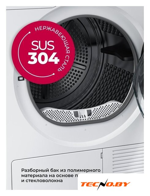 Хотя инверторная технология в данной модели не используется, это не мешает ей функционировать с высокой производительностью и низким уровнем годового энергопотребления - всего 275 кВт·ч в год. Уровень шума при сушке составляет 69 дБ, что позволит использовать прибор практически в любое время дня.
