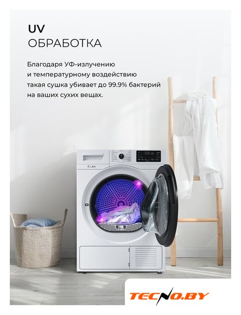 Машина оснащена 16 программами сушки, включая «Хлопок» для полотенец, «Смешанные ткани» для хлопка и синтетики, и даже программу для верхней одежды и пуховиков. Опция «Легкая глажка» оставляет вещи без складок, а функция UV-обработки заботится об уничтожении бактерий. Самая короткая программа занимает всего 30 минут, что обеспечивает оперативность и удобство.