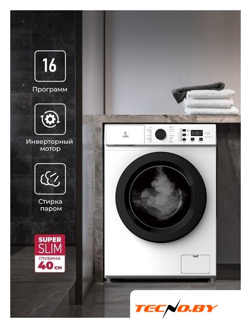 отдельностоящая, стиральная машина, с паром, загрузка до 6.5 кг, отжим 1200 об/мин, глубина 40 см (с люком 43.9 см), энергопотребление A+++, защита от протечек, 15 программ