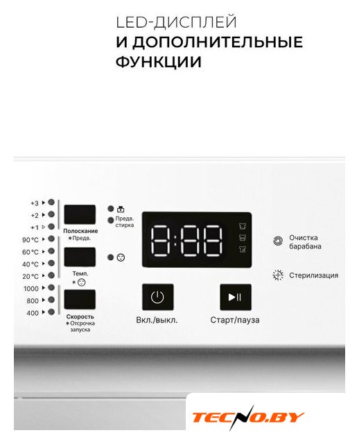 Электронное управление позволяет легко настроить необходимые параметры стирки. Светодиодная индикация и звуковой сигнал облегчают взаимодействие с устройством. Встроенный таймер отложенного старта и блокировка от детей делают использование стиральной машины безопасным и удобным для всей семьи.