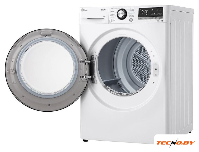Электронные элементы управления с цифровой индикацией облегчают процесс использования сушильной машины. Для дополнительного удобства предусмотрены звуковой сигнал, индикаторы ошибок, таймер отложенного старта и блокировка от детей. Технологии позволяют подключить устройство к смартфону через LG ThinQ, интегрируя его в ваш "умный дом".
