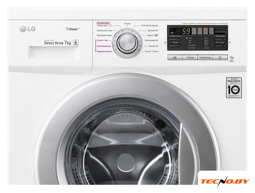 Электронное управление и цифровая индикация делают использование стиральной машины простым и понятным даже для неопытных пользователей. Возможность сопряжения со смартфоном через фирменное приложение LG наряду с интеграцией в "умный дом" делает управление устройством максимально удобным. Необходимо также подчеркнуть наличие звукового сигнала, индикации ошибок и таймера отложенного старта, которые добавляют комфорта в ежедневное использование.