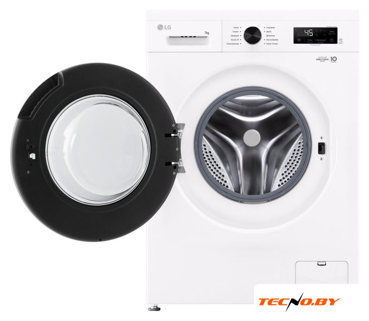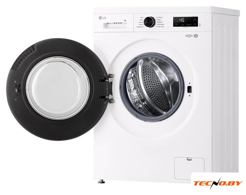 Стиральная машина LG F2Y1HS5W представляет собой отдельностоящую модель, сочетающую элегантный белый корпус с черными акцентами на панели управления и люке, что придает ей стильный и современный вид. Способная вместить до 7 кг белья, она гарантирует эффективное отжимание на скорости до 1200 оборотов в минуту, обеспечивая класс стирки A и класс отжима B.