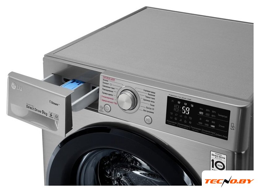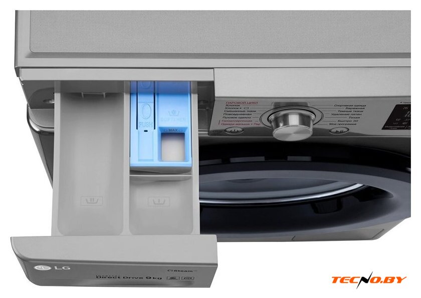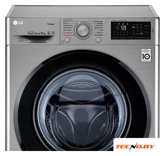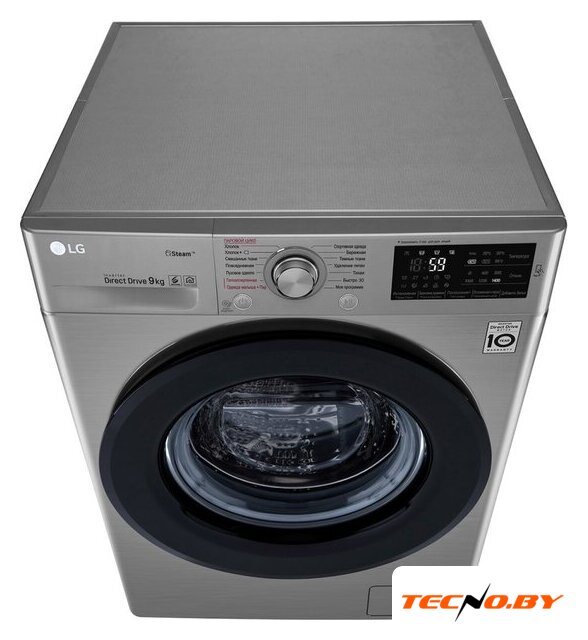 отдельностоящая, стиральная машина, с паром, загрузка до 9 кг, отжим 1200 об/мин, глубина 47.5 см (с люком 53.5 см), энергопотребление (new) A, прямой привод, 14 программ, 6 Motion (LG)/TurboWash 360 (LG)