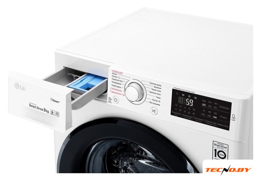 отдельностоящая, стиральная машина, с паром, загрузка до 10.5 кг, отжим 1400 об/мин, глубина 56.5 см (с люком 62 см), энергопотребление A, прямой привод, 14 программ, AI DD (LG), Загрузка двух типов белья TwinWash (LG)
