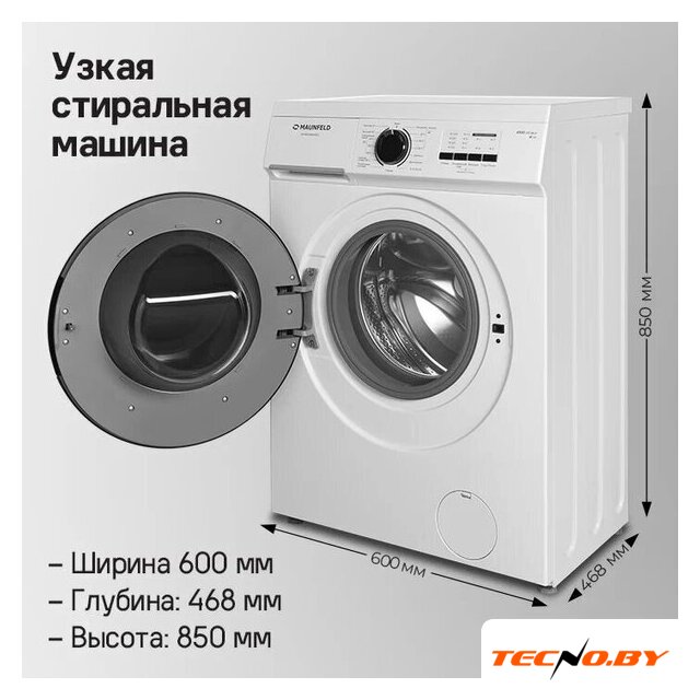 Стиральная машина MAUNFELD MFWM106WH052 имеет компактные габариты (60x46.8x85 см) и стильную отделку, что делает ее подходящим выбором для любого интерьера. Легкая и эргономичная конструкция весом 52 кг позволяет легко разместить ее в любом удобном месте в вашем доме.