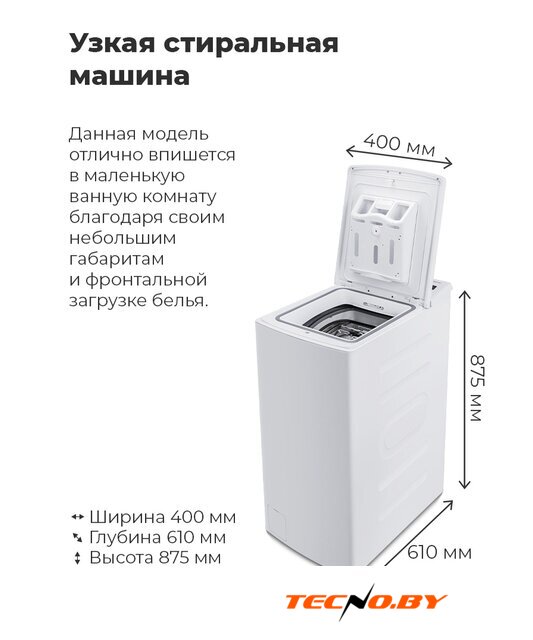 Эта автоматическая стиральная машина с вертикальной загрузкой отличается возможностью поместить до 7.5 кг белья за раз. Максимальная скорость отжима составляет 1200 об/мин, что обеспечивает эффективное удаление лишней влаги. Белоснежный корпус и высокий класс энергопотребления A+++ делают MAUNFELD MFWM128WH идеальным выбором для современных интерьеров и экономичных потребителей. Стиральная машина занимает немного места благодаря своим компактным габаритам: ширина 40 см, глубина 61 см, и высота 87.5 см.