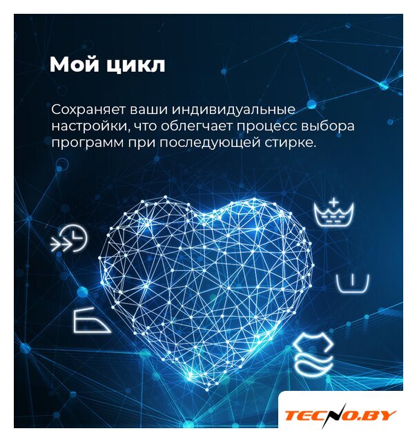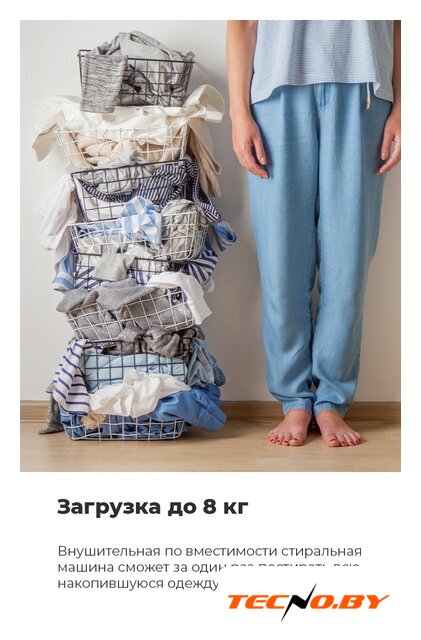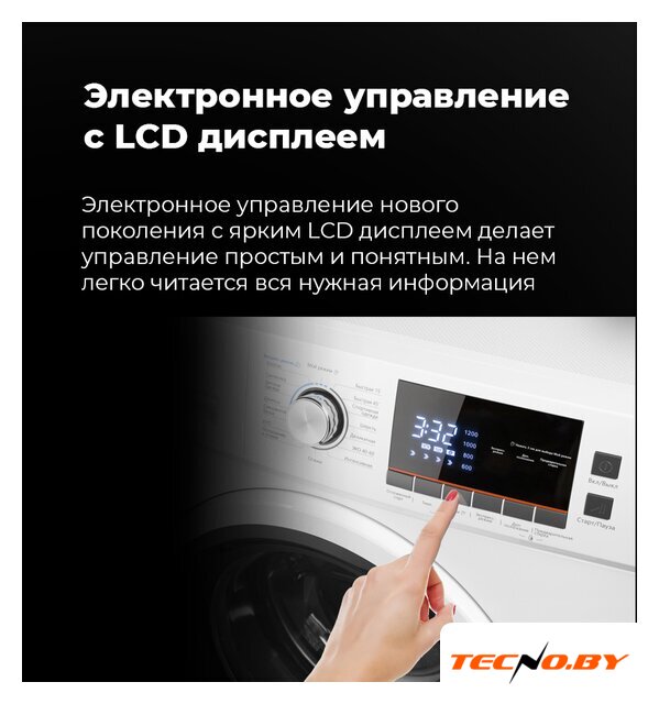 Электронное управление и интуитивно понятный цифровой дисплей делают эксплуатацию машины удобной и простой. Передовая инверторная технология снижает уровень шума во время стирки до 57 дБ, создавая комфортные условия для использования. Стиральная машина также оснащена блокировкой от детей и функции индикации ошибок, что делает ее использование безопасным. Таймер отложенного старта до 24 часов позволит вам легко планировать процесс стирки.