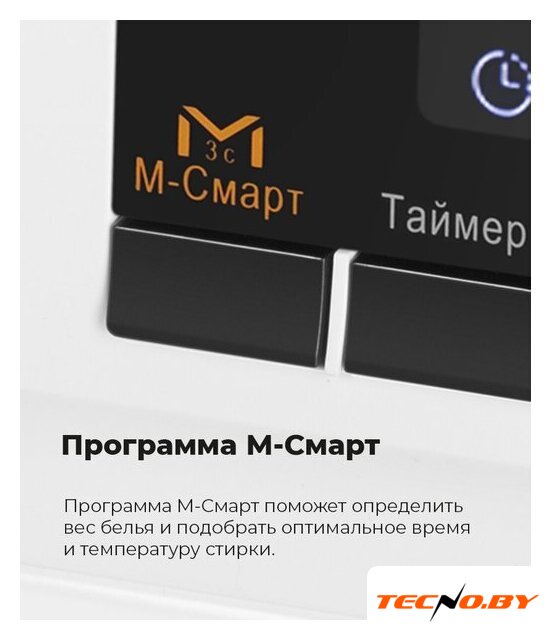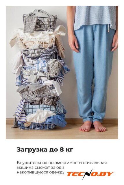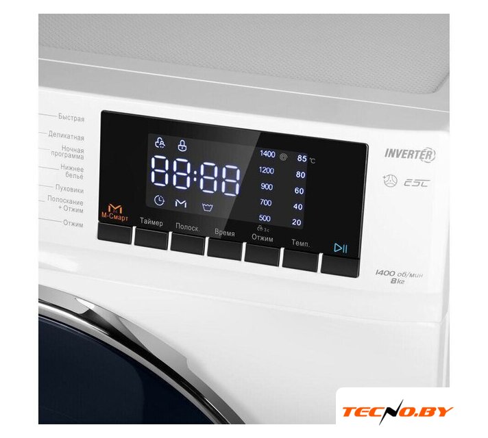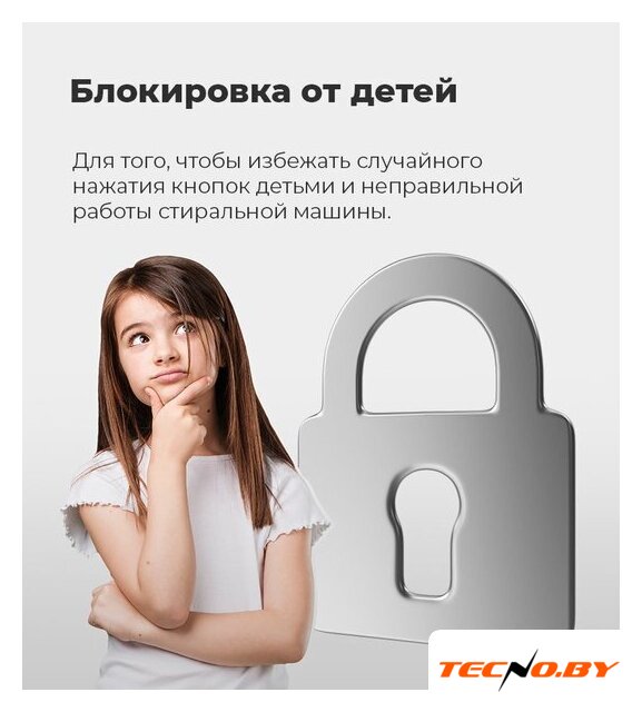 Электронная панель управления с цифровой индикацией позволяет без труда настроить нужный режим стирки. Таймер отложенного старта на 24 часа и блокировка от детей гарантируют безопасность и удобство использования, а звуковой сигнал и индикация ошибок предоставят полную обратную связь по ходу работы машины.