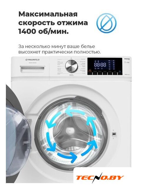 Максимальная скорость отжима 1400 об/мин гарантирует эффективное удаление влаги, а класс энергопотребления A+++ делает MAUNFELD MFWM148WH02 экономичным выбором для вашего бюджета. Благодаря инверторной технологии, вы сможете наслаждаться бесшумной и эффективной работой при уровне шума лишь 62 дБ во время стирки.