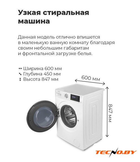 отдельностоящая, стиральная машина, загрузка до 7.5 кг, отжим 1200 об/мин, глубина 61 см, энергопотребление A+++, защита от протечек, 16 программ