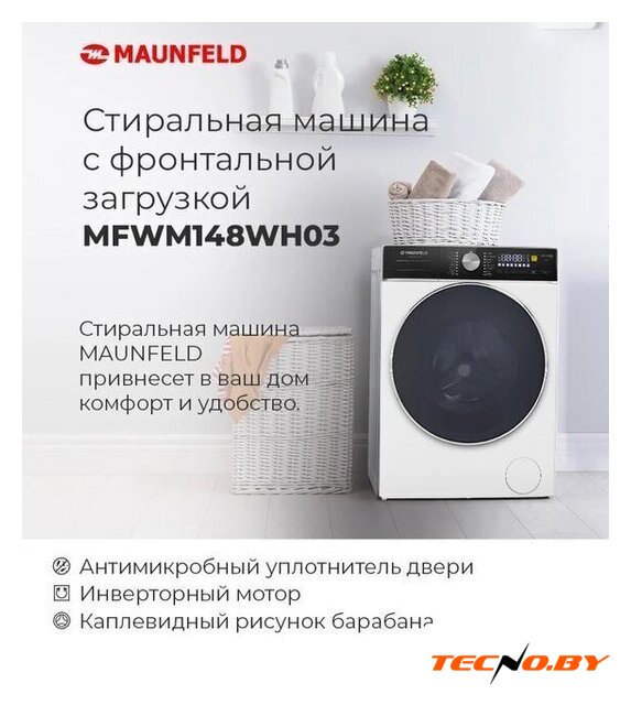 Стиральная машина MAUNFELD MFWM148WH03 предлагает 16 разнообразных программ стирки, что позволяет вам выбрать оптимальный режим для любого типа ткани и степени загрязненности. Среди них: Быстрая, Гигиеническая, Холодная, а также режимы для постельного белья, деликатных тканей, белья для детей и гипоаллергенная стирка. Для вашего удобства предусмотрено удаление пятен и дополнительное полоскание.